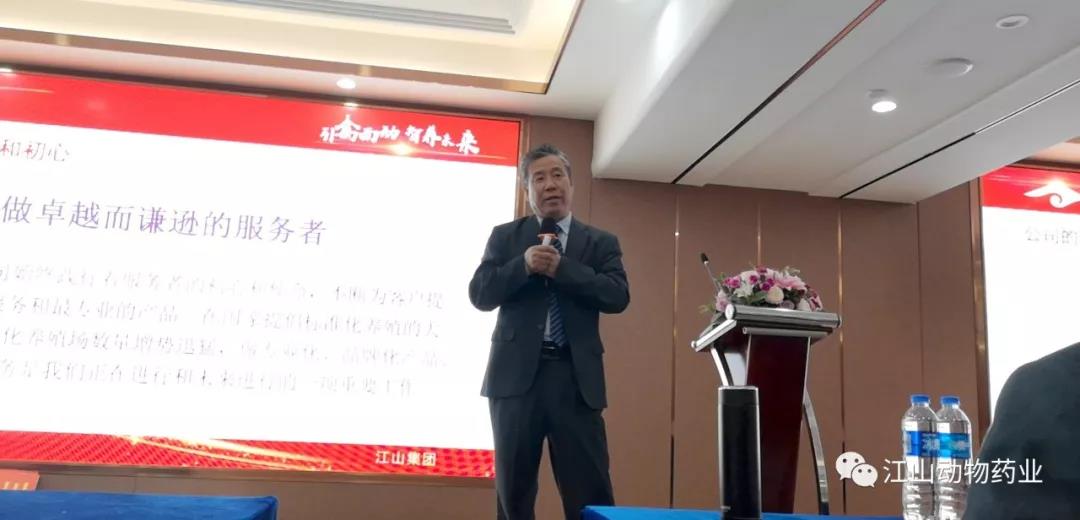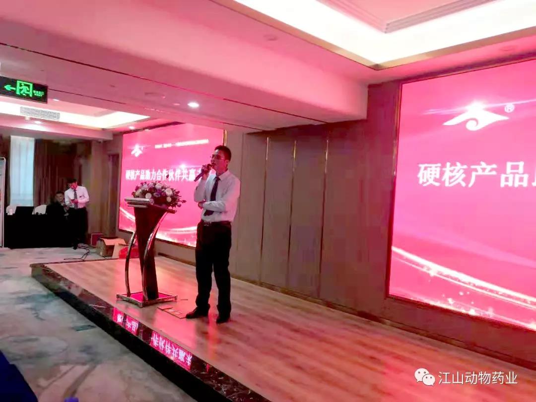 會議開始江山藥業(yè)董事長米同國先生為本次交流會致辭。米董事長提出江山藥業(yè)自成立以來一直以“永做卓越而謙遜的服務(wù)者”為初心和使命,不斷為客戶提供優(yōu)質(zhì)服務(wù)和最專業(yè)的產(chǎn)品!未來江山藥業(yè)將在客戶服務(wù)、產(chǎn)品定制化服務(wù)及市場開發(fā)上進一步下工夫,實現(xiàn)公司、經(jīng)銷商、養(yǎng)殖戶共贏!