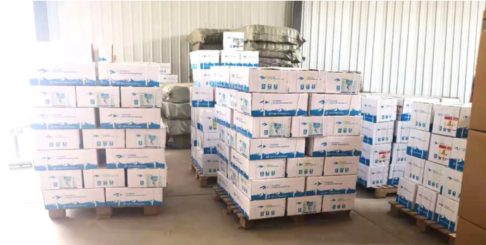 4月12日,經過半個多月的生產,江山藥業發往國外的產品已經全部完成生產,等待船期發往天津港。